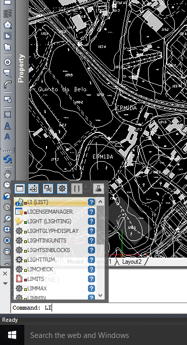 Quando digita na barra de comando, o IntelliCAD sugere nomes de comandos correspondentes à medida que digita o comando. Os nomes sugeridos aparecem numa janela Auto-Completar. Simplesmente seleccione o comando desejado na lista. Além dos nomes de comandos, as sugestões podem incluir nomes de comandos externos, variáveis de sistema, aliases e funções LISP.