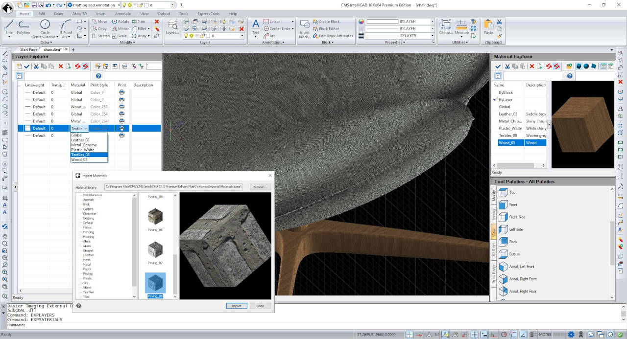 • Nova integração com Artisan Render em todas as versões 8.2 CMS IntelliCAD permite aos utilizadores criar rapidamente uma imagem foto-realista de modelos usando uma ampla gama de materiais pré-definidos e configurações de iluminação combinados com a capacidade de criar luzes personalizados e materiais realistas.