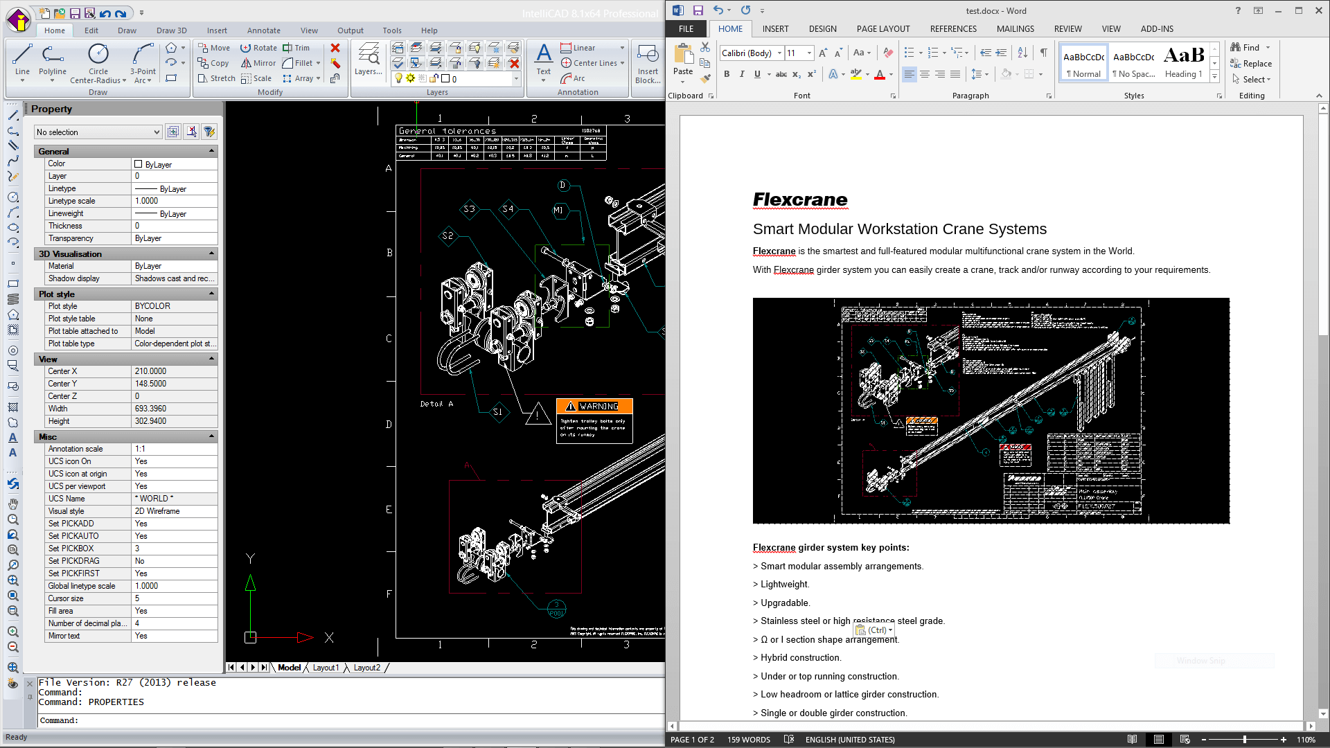 O CMS IntelliCAD fornece a edição in-situ de objetos Microsoft®, como os criados nos programas de software Microsoft® Word e Microsoft® Excel. A edição no local facilita a partilha de dados com outros utilizadores e programas. Por exemplo, poderá incluir desenhos do IntelliCAD em ficheiros criados com o Microsoft® Word e inserir ficheiros criados com o Microsoft® Word em seus desenhos CMS IntelliCAD.